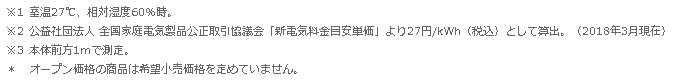 ●※2:公益社団法人 全国家庭電気製品公正取引協議会「新電気料金目安単価」より27円/kWh(税込)として算出。(2018年3月現在)