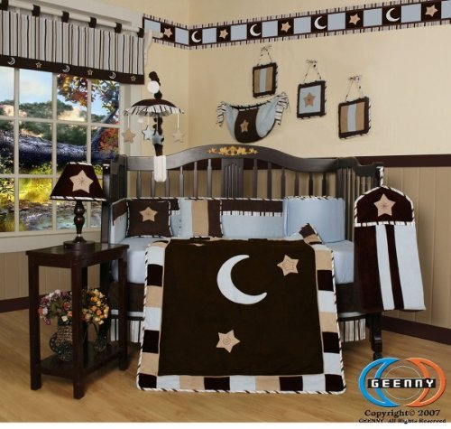 -. Title : GEENNY 13 Piece Crib Bedding Set, Brown/Blue Star and Moon