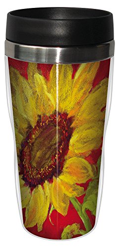 Nel Whatmore Sunflower Prima Donna Travel Mug, Stainless Lined Coffee Tumbler, 16-Ounce - Floral Gift for Flower Lovers - Tree-Free Greetings 25584