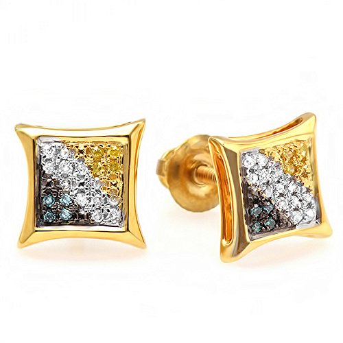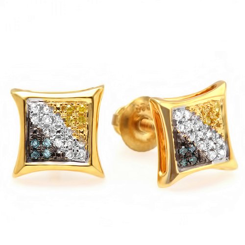 This lovely Stud Earrings are beautifully hand set in micropave setting. The diamonds are real and sparkling. The Colored diamonds are color enhanced. SKU # K1267Feature