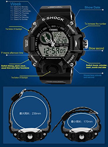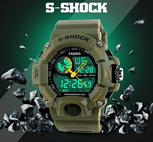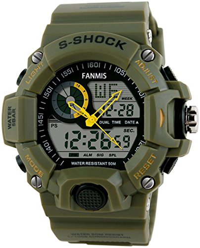 -. Binding : Watch -. Brand : Fanmis -. Department : Mens -. EAN : 0702679853696 -. Feature : 100% Brand new and high quality / 4 Colurs Option New Stle Design and very popular / Japan original installation import pointer movement / ABS Plastic & PU Plastic Watch Case / Water-resistant to 30 m -. Label : Fanmis -. Manufacturer : Fanmis -. MPN : 1029 -. PackageQuantity : 1 -. PartNumber : 1029 -. ProductGroup : Watch -. ProductTypeName : WATCH -. Publisher : Fanmis -. Studio : Fanmis -. Title : Fanmis Men's Sport Digital LED Watch Casual Military Multifunctional Wristwatch Water Resistant Green -. UPC : 702679853696