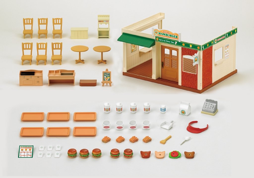 There are plenty of small items like hamburgers, potatoes, juices.