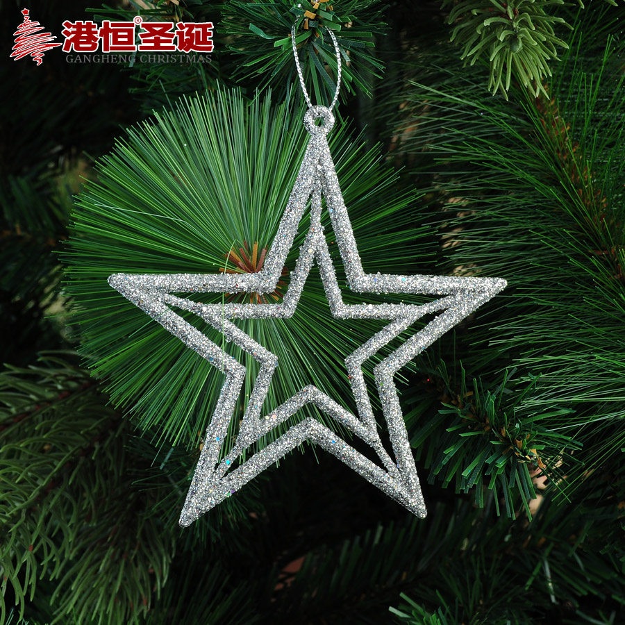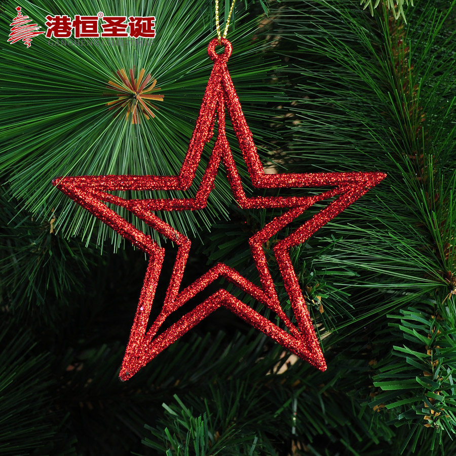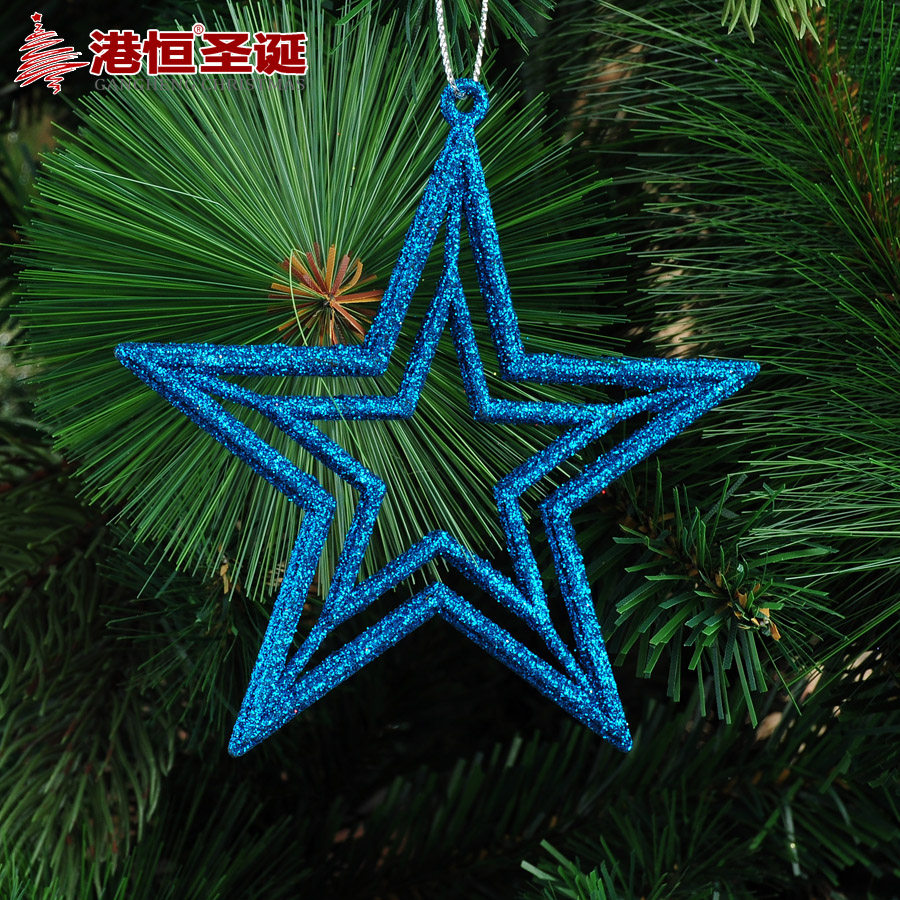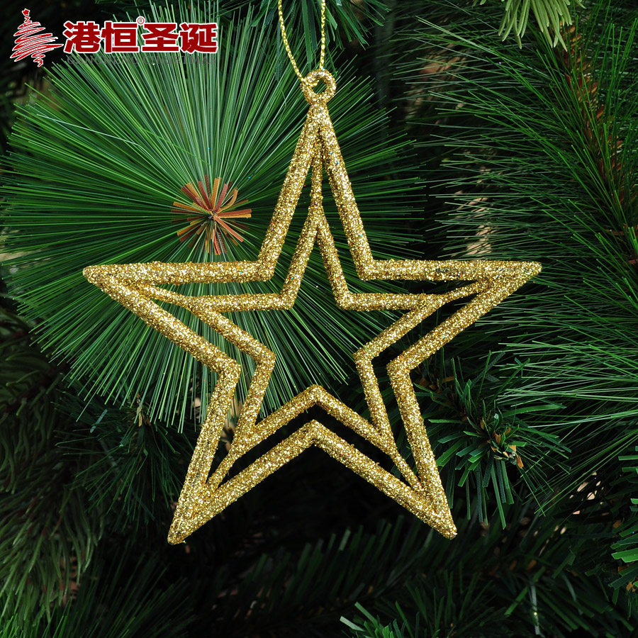 【Name Hong Kong Heng Christmas tree decorations 10cm sticky powder hollow five-pointed star Christmas ornaments 5g