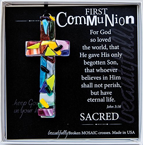 First Communion John 3:16 Mosaic Handmade Glass Cross