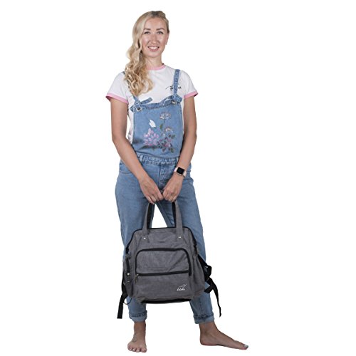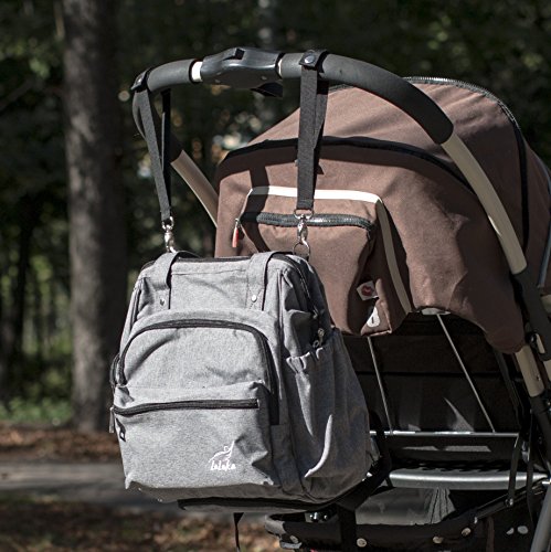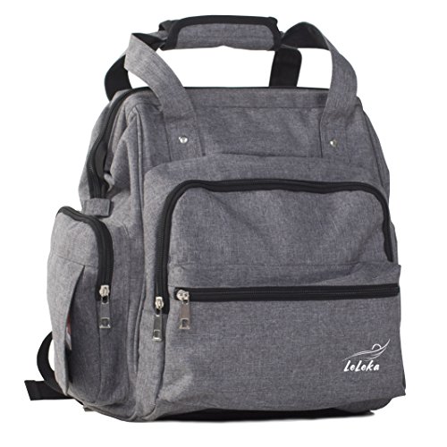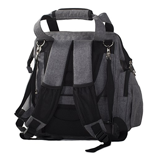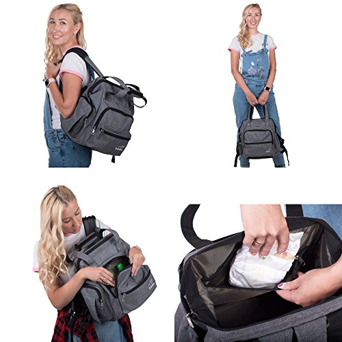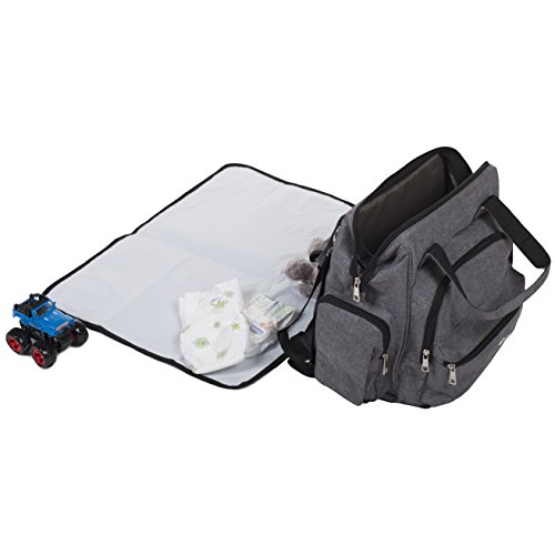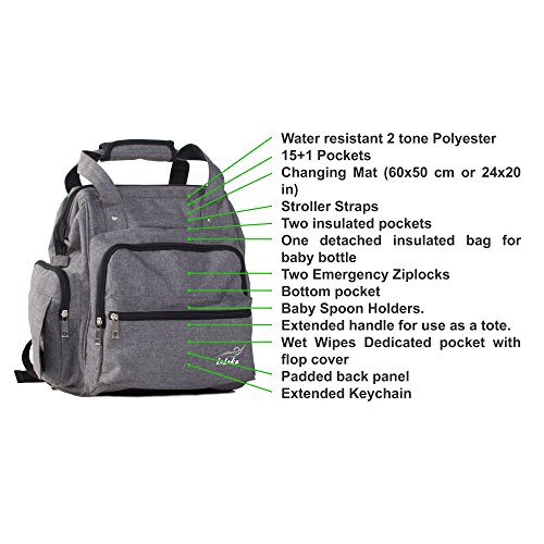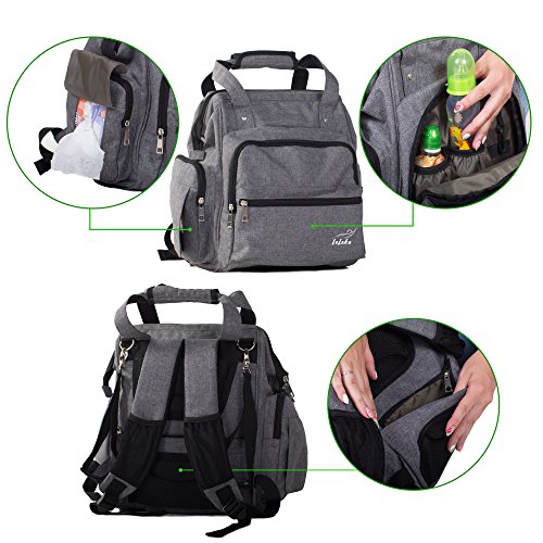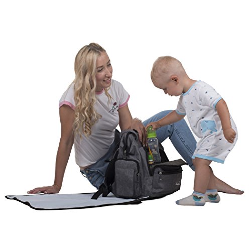 Multifunctional Baby Diaper Bag Backpack for mom or dad with Stroller Straps, Changing Mat, Emergency Ziplocks, and Detached insulated bag. Unisex. Grey.