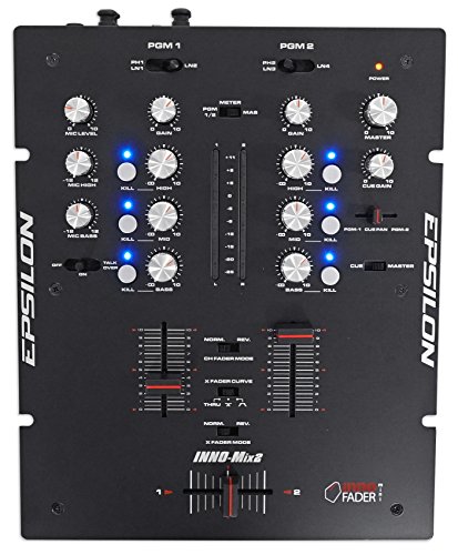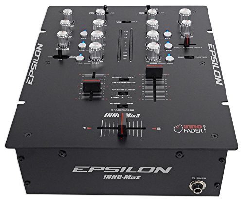 Binding : Electronics Product Description EPSILON INNO-MIX 2 is an ultra compact Pro DJ Battle Mixer with a built-in mini iNNO - Fader Cross-Fader. This professional 2-channel SCRATCH mixer is built to work for over 4 million cycles with contactless design delivering butter smooth, precise and fast transitioning between channels. INNO-MIX 2 is a professional Battle Mixer with an integrated iNNO-FADER cross fader that delivers a buttery smooth feel every professional DJ is looking for. The isolated 3-band equalizer with 100% kill features for High, Mid, and Low frequencies using rotary knobs or by using the instant dedicated kill buttons delivers that one of a kind mix. This Pro DJ mixer also includes features like cross-fader start, cross-fader curve and reverse channel fader mode. The balance TRS ¼" jacks for master output allows for easy mobile or club install. 0