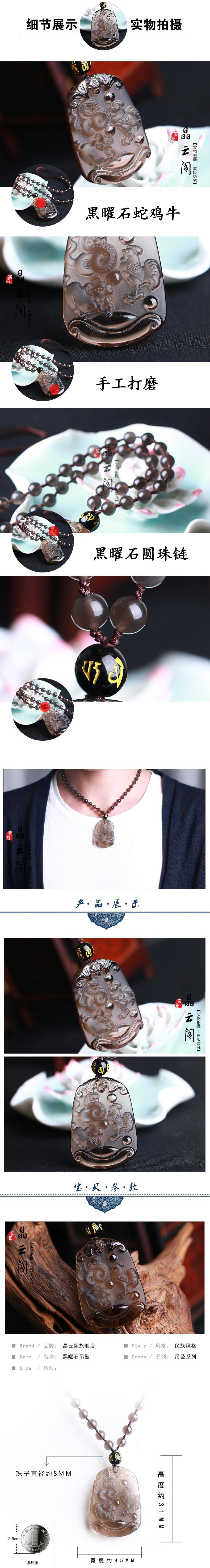 开光冰种黑曜石三合贵人三元同府吊坠属鸡蛇牛男女项链