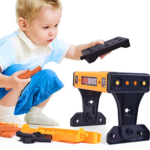 Compact, Lightweight & Easily Portable:This product adopts the 3 in 1 free combination design, which can be assembled into a workbench, and can be assembled into a portable tool box. make your kid's travel buddy everywhere! give them the chance to be creative wherever you are, carrying easily this compact kids' toolbox on your holidays, weekend trips or your daily out and about!