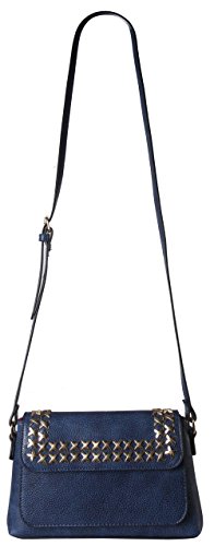 -. Feature : This handbag comes in 6 different colors: Black, Blue, Brown, Grey, Red, and Taupe. / High Quality PU Leather Front Pocket Accented with Studded Décor Womens Purse Cross Body Handbag. / High Quality Fabric Lined Interior with Multiple Interior Pockets. 1 Main Compartment with 1 Zippered Pocket and 2 Open Pockets Inside. 1 Pocket in Front and 1 Zippered Pocket Outside in the Back. / Approximate Size info: Length 10" x Width 1.5" x Height 6" Material: PU Faux Leather. Top Zipper and Flap Closure. / Color showing in other color is to show the different variation angles of the handbag. The actual bag ship, will be the one your purchesed.