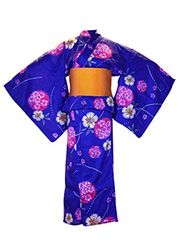 -. Title : myKimonoレディース伝統的な日本の着物ローブ浴衣603イエローObi Belt /ブルーwith Flower Pattern