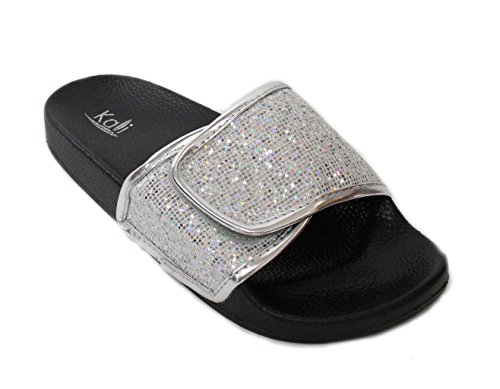 | Kali Women's Sparkle Glitter Slip On Sandals Space |