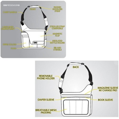 - Feature : Bundle (2 Items): DD Messenger II Bag w/ Dad Check List on Flap (Black) + DD Pacifier Holder (Black) / For full product details, see product descripton below! / Made of durable polyester fabric / One large compartment for baby with mesh pocket and additional compartment for dad with mesh pocket / Padded shoulder strap, Insulated bottle holder