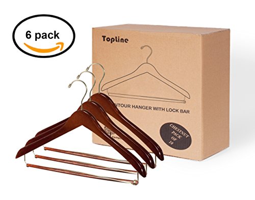 -. Title : Topline Classic Wood Countour Suit Hanger with Lockbar - 6 Pack