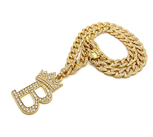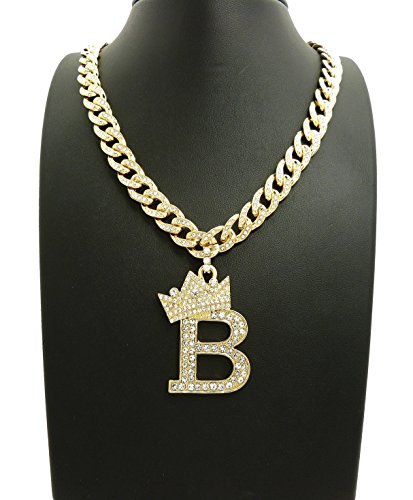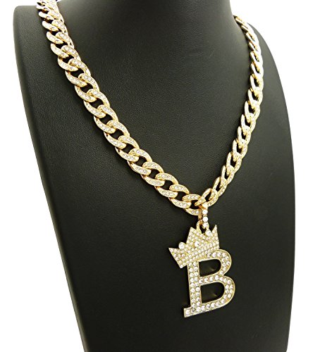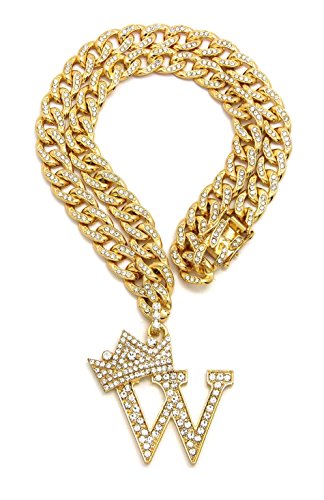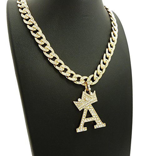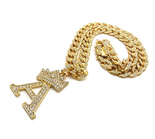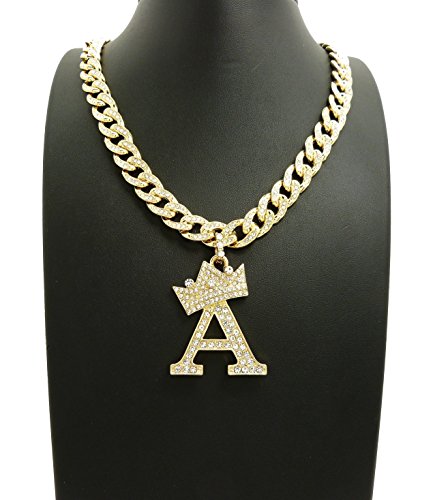 -. Feature : Women's Crown Tilted Initial Alphabet Letter Pendant 10mm 18" Iced Out Cuban Chain Necklace in Gold Tone / Size of Pendant: (A) 1.25" X 2.0", (B) 1.25" X 2.2", (C) 1.15" X 2.15", (D) 1.35" X 2.15", (E) 1.35" X 2.0", (F) 1.25" X 2.0" / (G) 1.25" X 2.0", (H) 1.5" X 2.0", (J) 1.0" X 2.15", (K) 1.35" X 2.15", (L) 1.25" X 2.15", (M) 1.55" X 2.0", / (N) 1.3" X 2.0", (P) 1.25" X 2.0", (R) 1.35" X 2.0", (S) 1.0" X 2.0", (T) 1.25" X 2.0", (V) 1.5" X 2.0", (W) 1.75" X 2.0" / Fashion Costume Jewelry, Imitation Gold Color Plated