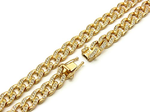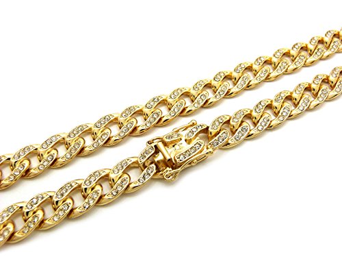 -. Title : Women's Crown Tilted Initial Alphabet Letter Pendant 10mm 18" Iced Out Cuban Chain Necklace in Gold Tone