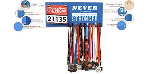 17 hooks to hang off your medals and 2 clips to hang your bibs
