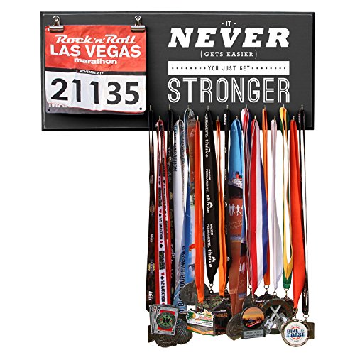 Runrilla Race Medal and Bib Hanger - It Never Gets Easier