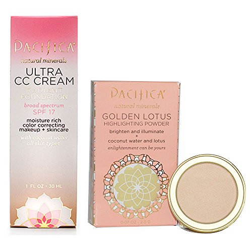 -. Feature : This bundle includes one 1 fl. oz. of Pacifica Ultra CC Cream Radiant Foundation (Natural/Medium), and one .05 fl. oz. of Pacifica Golden Lotus Highlighting Powder (Sheer Golden Glow) / Winner of the 2014 Natural Health Beauty Awards "Best CC Cream!" Instantly illuminate and perfect your skin with specially adapted color correcting minerals and multi-action natural beneficials including coconut water. / 100% physical broad spectrum SPF 17 to protect your skin from the sun's harmful UVA/UVB Instantly illuminates and perfects skin. Contains a blend of natural beneficials to provide anti-aging benefits and subtle Jasmine fragrance. Specially adapted color correcting minerals adapt to your own skin tone 100% recyclable airless container.