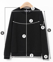 | 尺码 | ①肩宽 | ②胸围 | ③下摆围 | ④袖口围 | ⑤袖长 | ⑥前衣长 | ⑦后中长 | ⑧上臂围 | ||