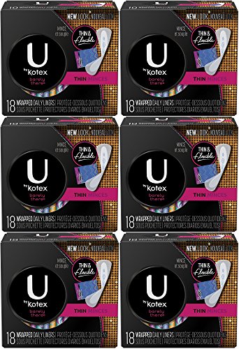 U by Kotex Barely There Liners, Light Absorbency, Unscented, 18 Count (Pack of 6)