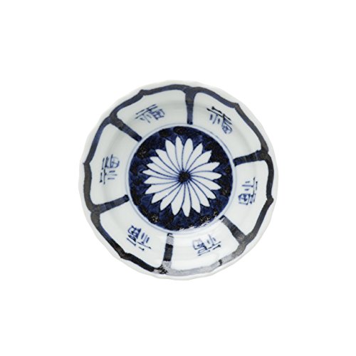 원본상품명: 有田? 染付 福?菊花文 輪花小皿 9cm 李?窯 rso0473