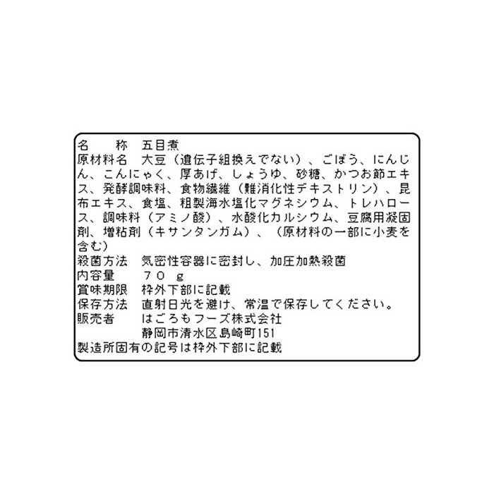 원본상품명: はごろも おかずで健康 五目煮 70g(2026)×4個