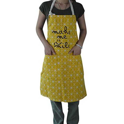 ICEBLUE 23.6''X30.7'' Cotton Linen Canvas Apron with Convenient Pocket Durable Stripe Kitchen and Cooking Apron for Chef Apron for Cooking, Grill and Baking (Yellow)