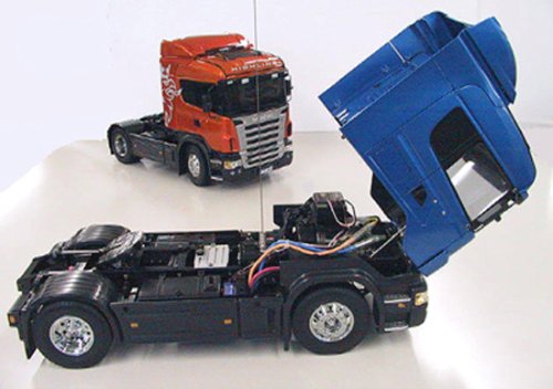 -. Feature : Vorbildgetreuer 2WD-Antrieb / Fahrerhaus kippbar (nach vorne / Hinterachse mit Metallkegelrädern / 3-Gang-Schaltgetriebe / Lieferumfang: Tamiya 300056318 - Scania R470 Highline Truck