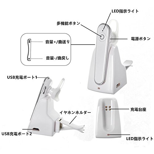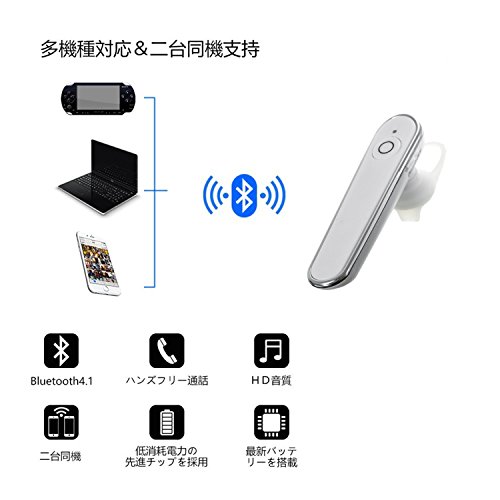 원본상품명: Bluetooth 4.1 ヘッドセット 片耳 車載 ブル?トゥ?スイヤホン 高音質 小型 ?量 ワイヤレス イヤホン ハンズフリ?通話 ?耳兼用 マグネット式 充電台付き (ホワイト)