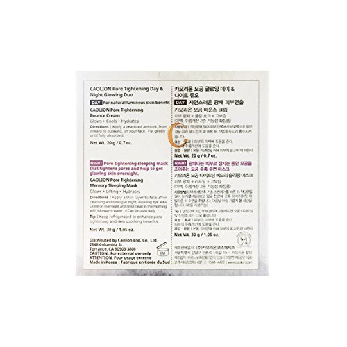 Caolion Pore Tightening Day & Night Glowing Duo - Controls Sebum, Hydrates The Skin, Skin Elasticity - 1.69 oz.