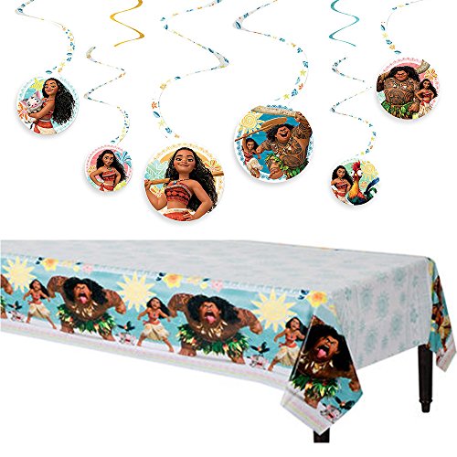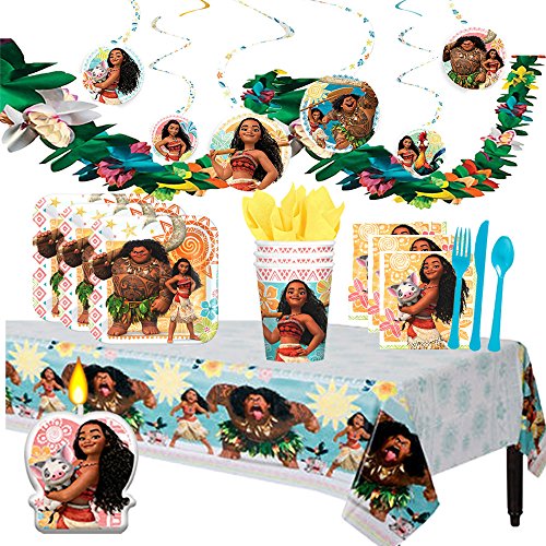 -. Title : Disney Moana Deluxe MEGA Birthday Party Supplies Pack and Decorations for 16 includes Plates, Napkins, Cups, Cutlery, a Table Cover, a Candle, Swirl Decorations, and a Flower Garland