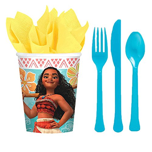-. Feature : Our Special Disney Moana Deluxe MEGA Party Pack includes: / (16) 7" Plates, (16) 9oz Cups, (16) 2-ply Napkins, (16) Forks, Knives, Spoons / (1) 54 x 96 Table Cover, (1) Candle / (1) Pack of Swirl Decorations (6 total swirls), (1) Flower Garland / and a special thank you card!
