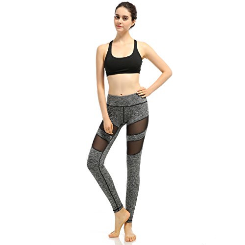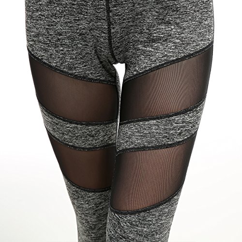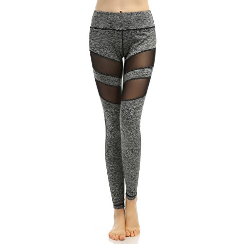 -. Title : SOUTEAM Womens Stretchy Mesh Panel Leggings High Rise Running Tights, Gray, XL