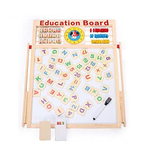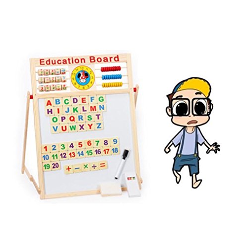 Feature: 100% brand new and high quality Product name: Multifunctional magnetic double side drawing writing board Package size: 44*36.5*2.8cm Board size: 43.7*35.5*1.5cm You can draw the size of the writing board : 28.6*28.6cm Material : woodiness Suitable for age: 2 years of age or older baby Product function: can play to the child's imagination painting, is a way to express their feelings. Painting can exercise the child hands of flexibility and coordination, training children to be good at observing things to understand things and characteristics. Drawing can also use the function of the right hemisphere of the brain development, intellectual development is also highly beneficial, there are a variety of computing, mom and dad can also teach children to learn the oh Product features: many functions in addition to the above parts, also comes with a small computational frame, small ball count, clock, children will learn better, and is suitable for a wide age. Small blackboard can free drawing and writing, a blackboard eraser wipe no, white board magnetic can paste symbols ah what the paste can also be water strokes to write, written with a brush head, also can use wet towel wipe, (yeah, so easy, my mother will not worry about my study), but also a method of mom and dad parent-child 1PC Education board ( Blackboard eraser, a marker, a piece of chalk, a box of chalk. Five arithmetic symbols, 26 letters, 20 numbers) 0