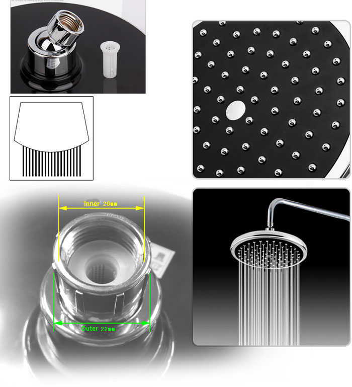 8" Round High pressure Over Head Bathrooms Rain Shower head ABS Plumbing Fixture