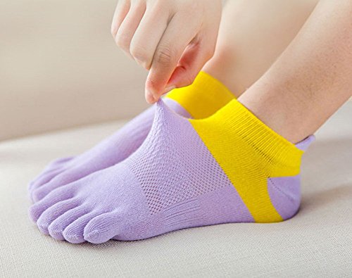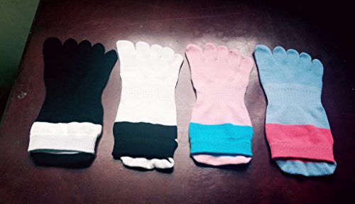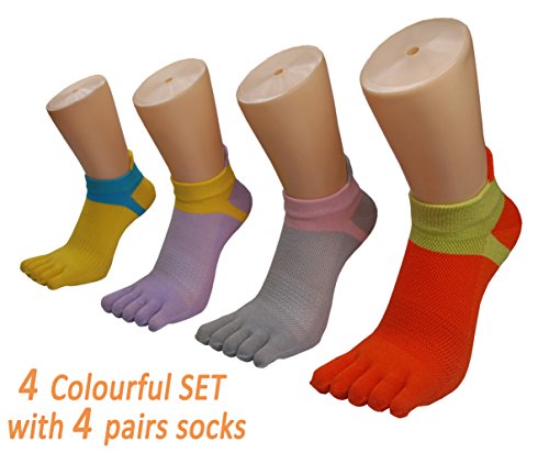 -. Feature : Comfortable Fabric - The Toe Socks are made of 90%Cotton + 10%Dacron, lightweight breathable,which are super stretch and can offer you great comfort. / Elasticity and Well-Fitting - Our toe socks are sized 9-10(US) to fit women with shoe sizes between 6-9(US). The great elasticity makes our five finger socks well-fitting to most people. / Prevent Forming of Blisters - Toe socks can help prevent those pesky blisters from forming in between your toes. They help reduce friction from your toes rubbing against each other, and your toes rubbing against your shoe. With that lack of friction, you can say goodbye to blisters. / Multi Color Package.(Color as picture show) Set has 4 pairs socks in these colors. / OCCASION: Quarter toe socks and Mesh Wicking designed fit Running or other sports in SP.R.Ing, Summer, Autumn,Winter.Machine wash and hand wash.