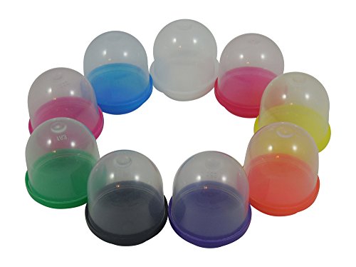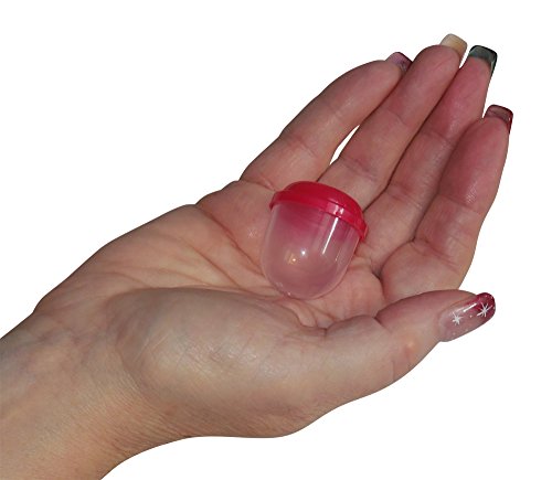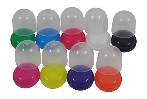 SOFT PLASTIC clear frosted capsules provide greater safety than clear brittle polystyrene capsules. Tight fitting colored lids provide secure vending and storage.