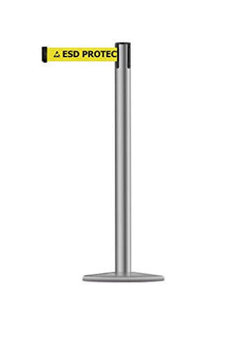 Tensabarrier 889U-3P-3P-STD-NO-ESD-C Polished Stainless Post, 2" Wide, 7' 6" Length "ESD" with Logo" Belt, 90" Length, Steel