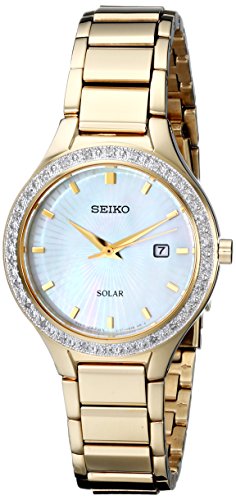Seiko 손목시계 Gold Stainless Steel Solar Mother of Pearl Dial Watch SUT138