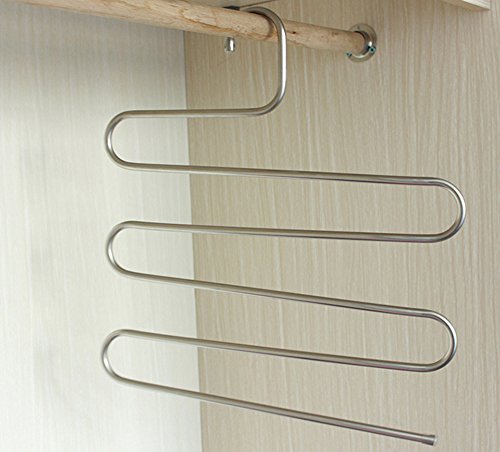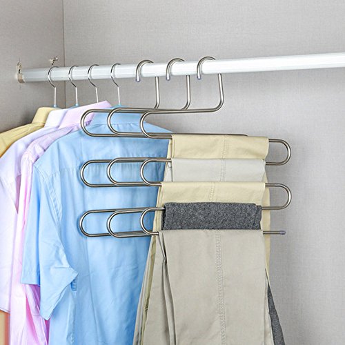 -. Title : 2 Pack - S-shaped Stainless Steel Heavy Duty Hangers with 5 Layers storage rack for Clothes