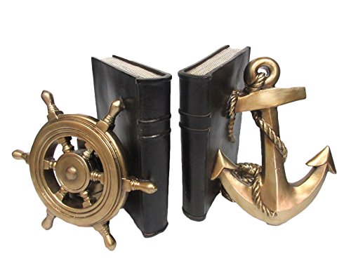 Rustic Nautical Ship Wheel and Anchor Decorative Bookends Set 7 Inch Tall