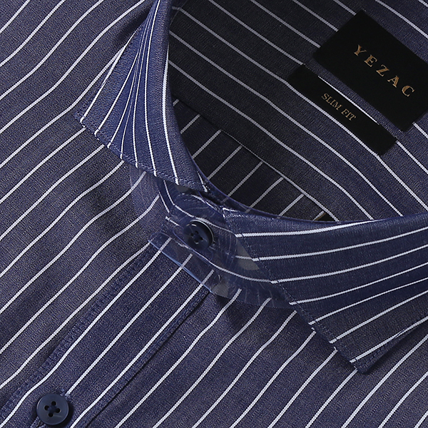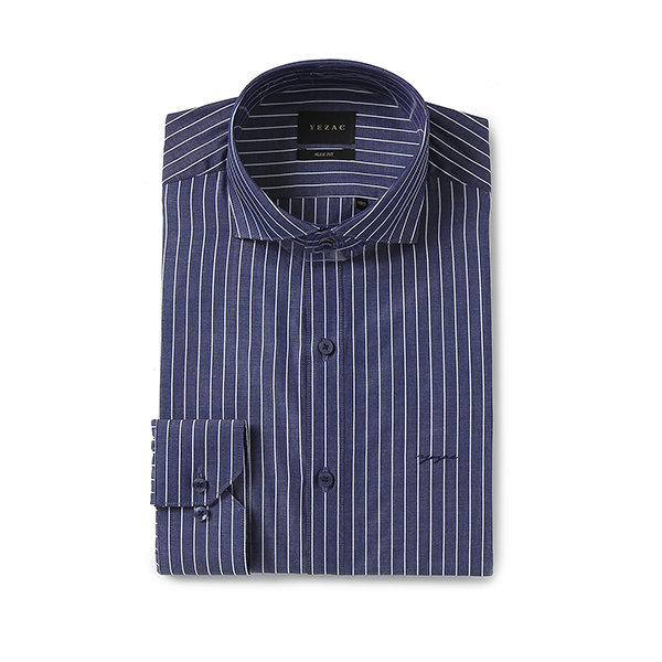 와이드스트라이프 슬림핏 네이비셔츠 ( 와이드카라 )