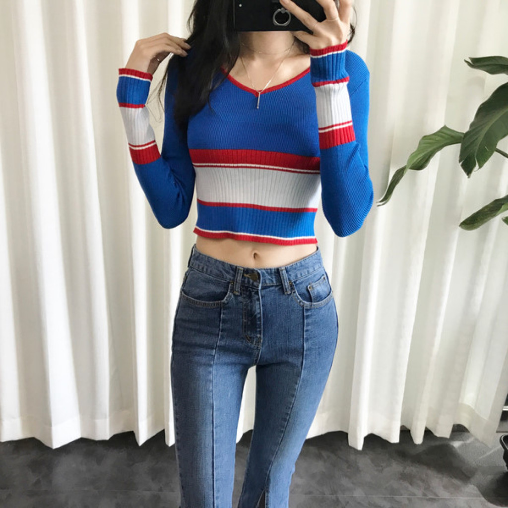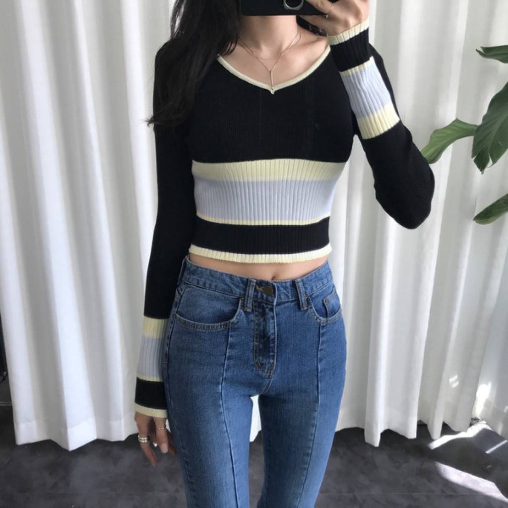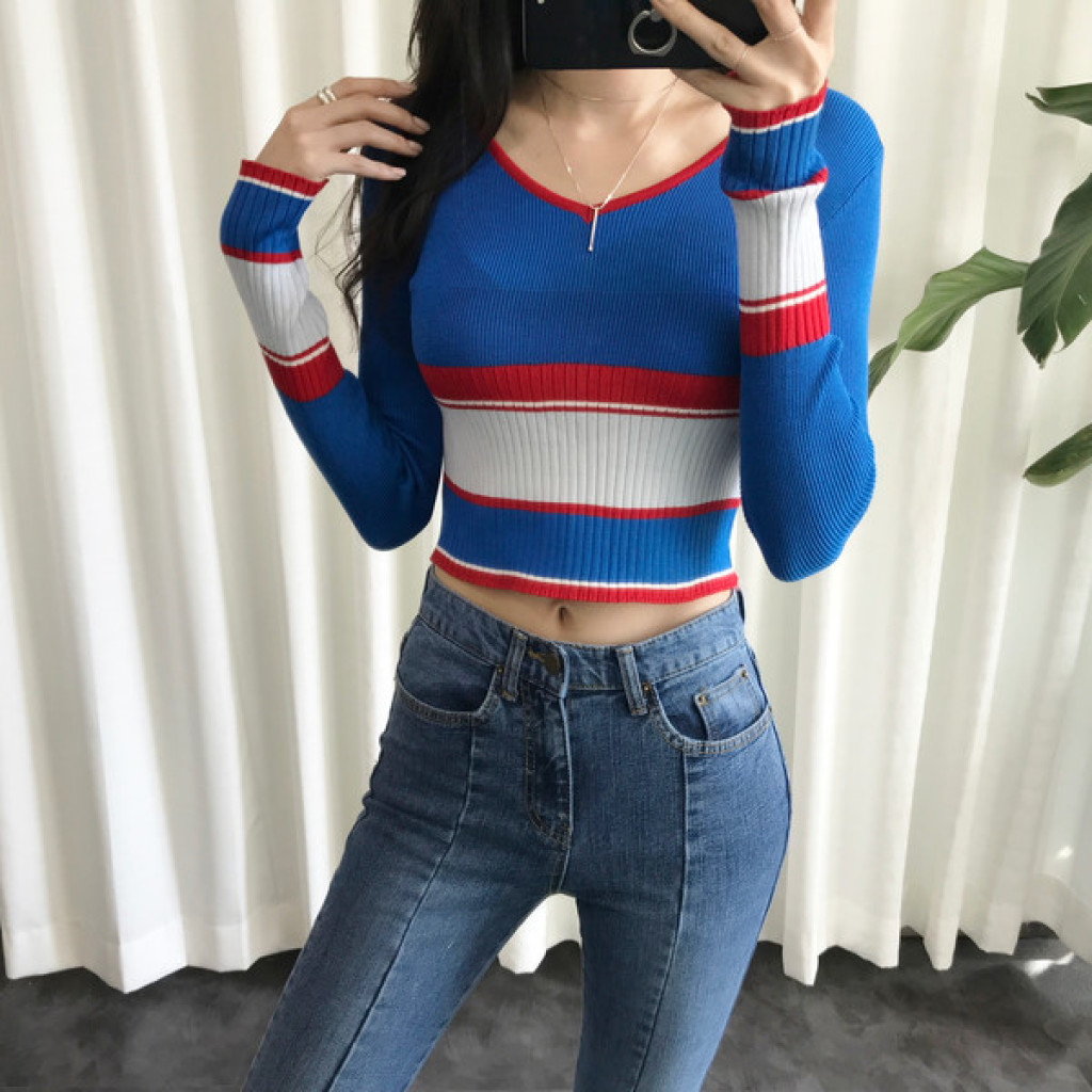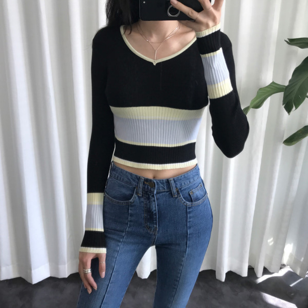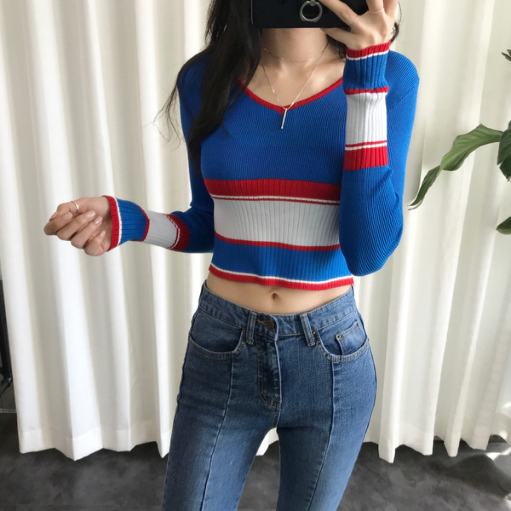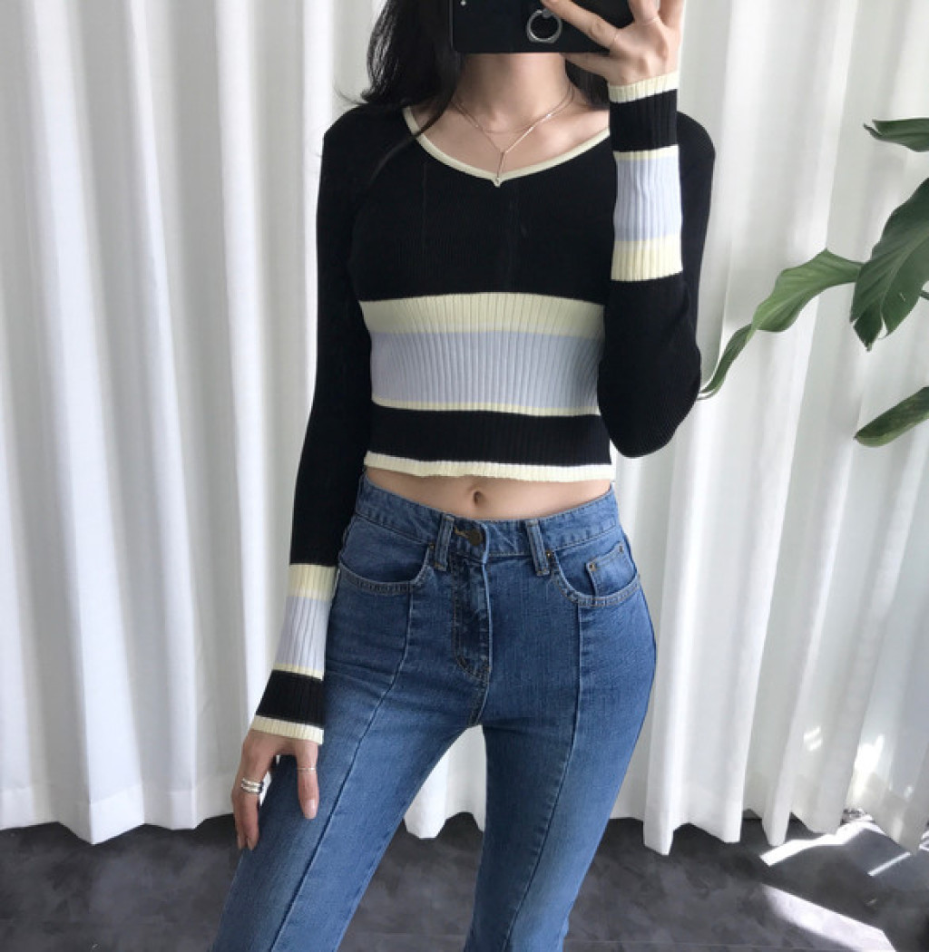 살짝 짧은 총장이 배색니트티셔츠의