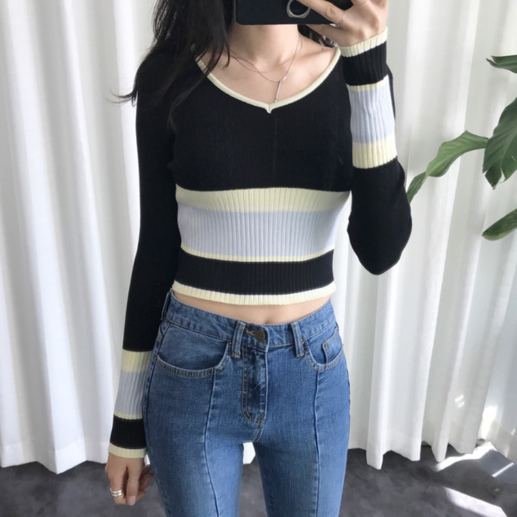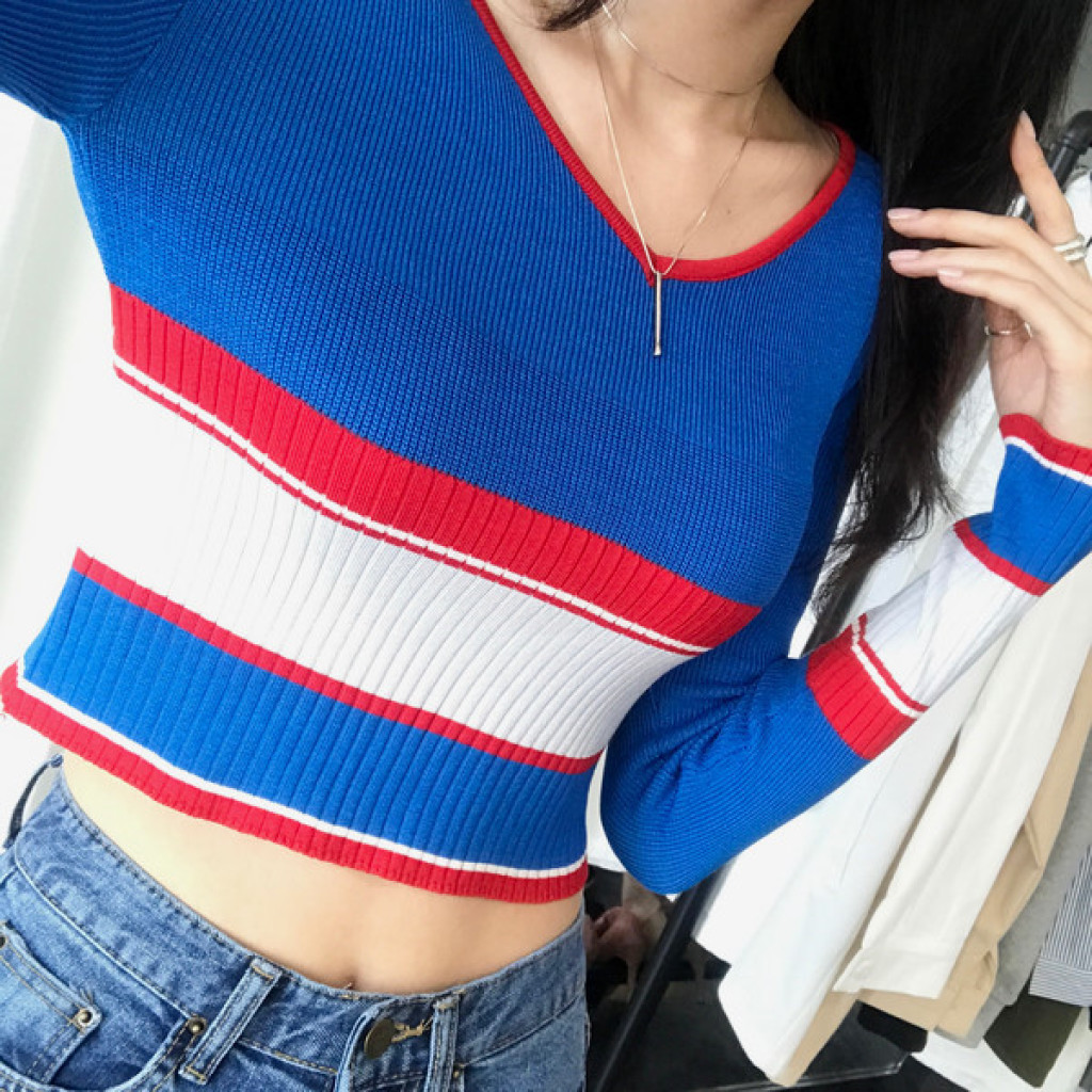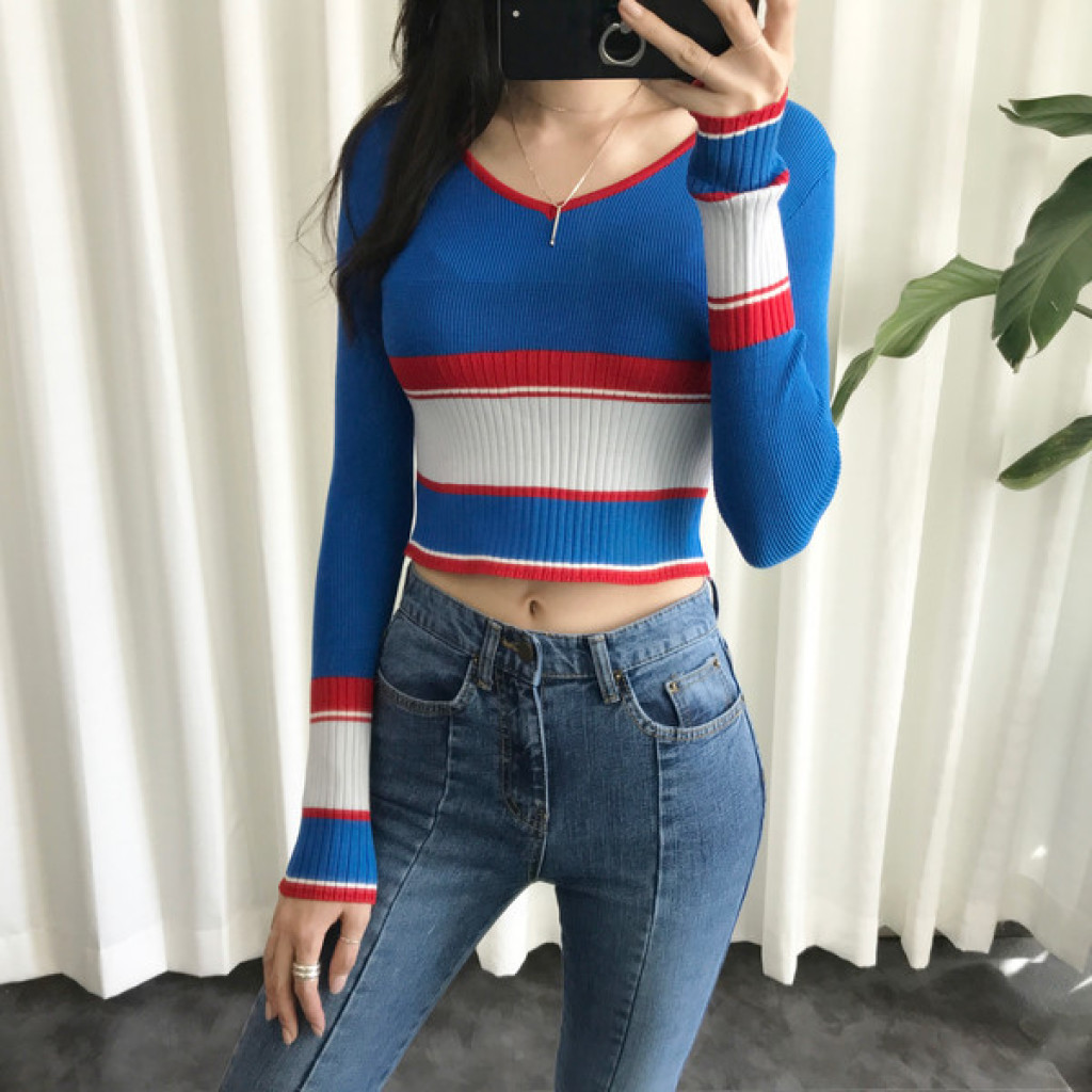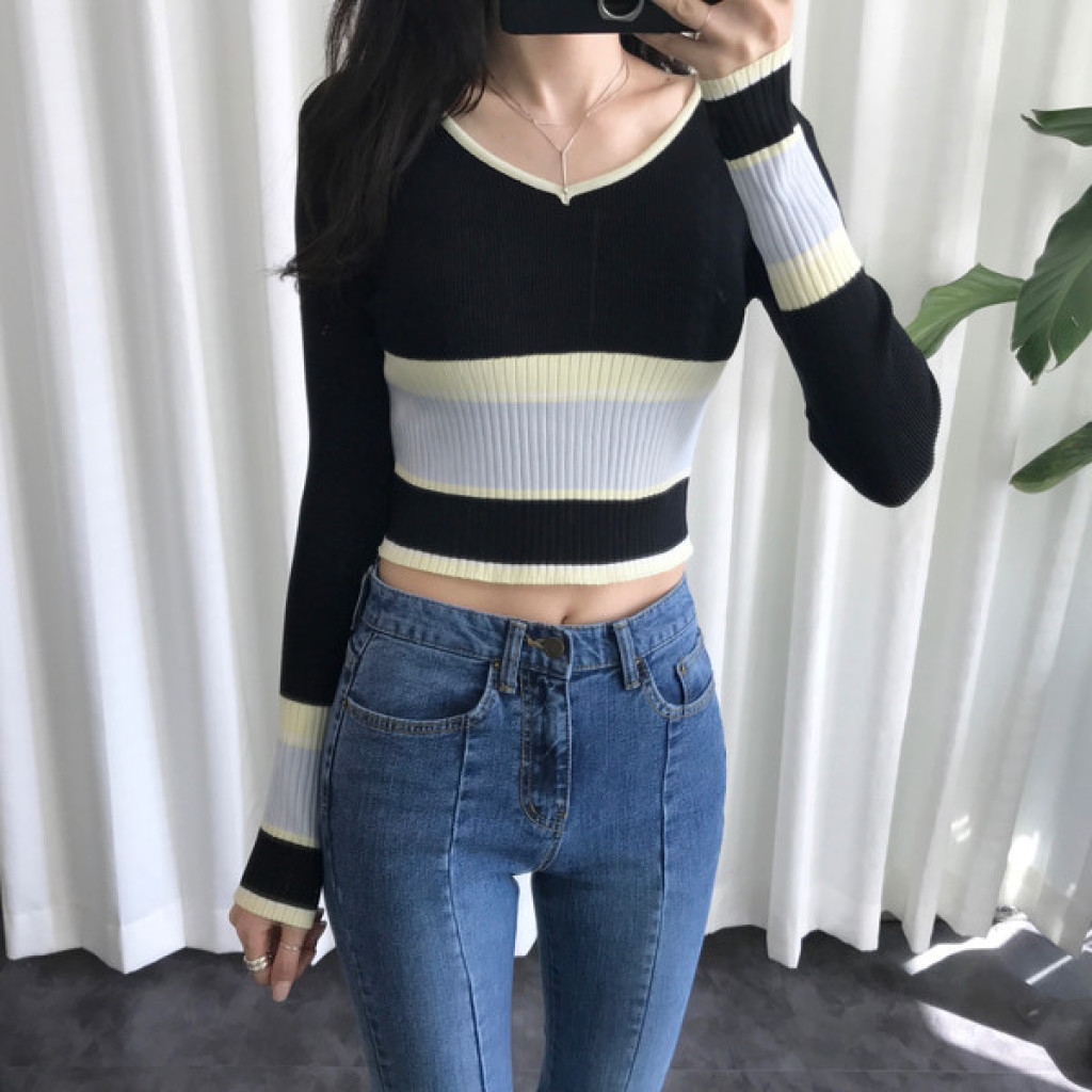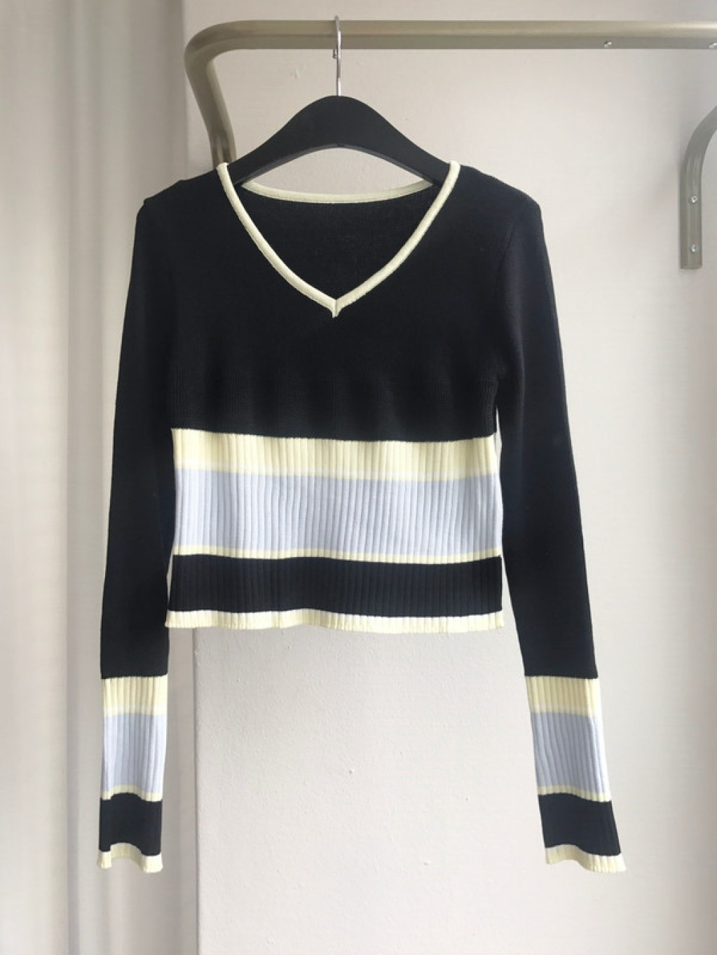 살짝 짧은 총장이 배색니트티셔츠의