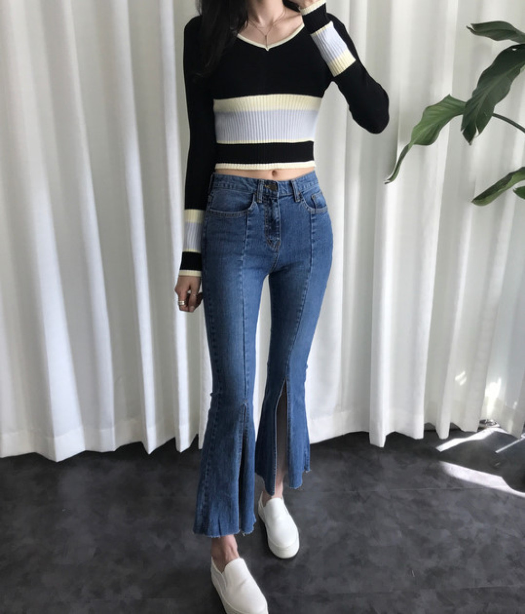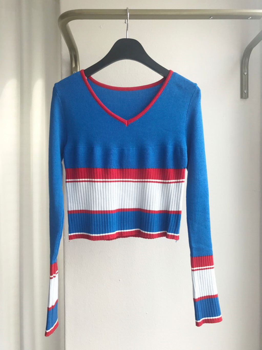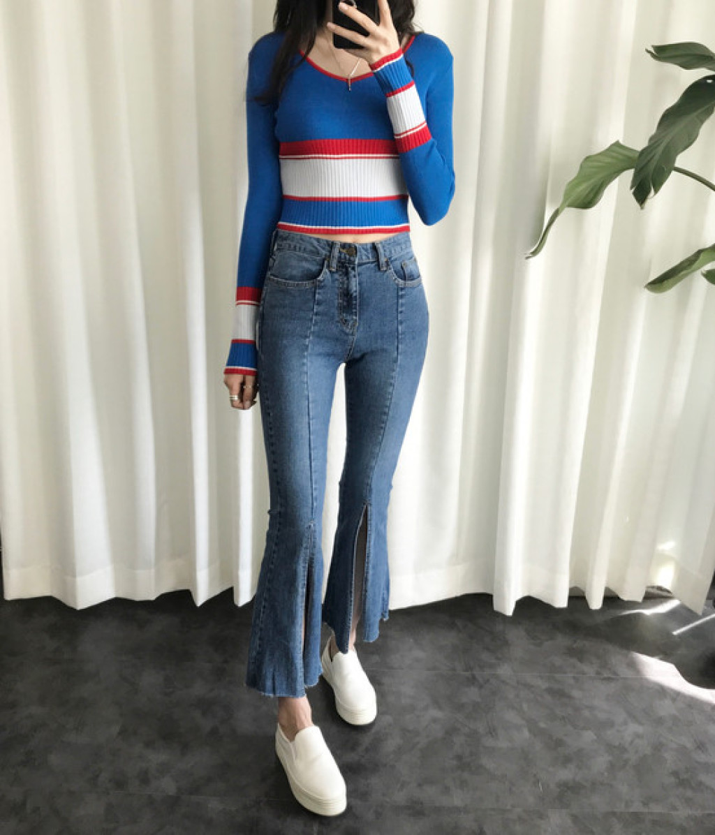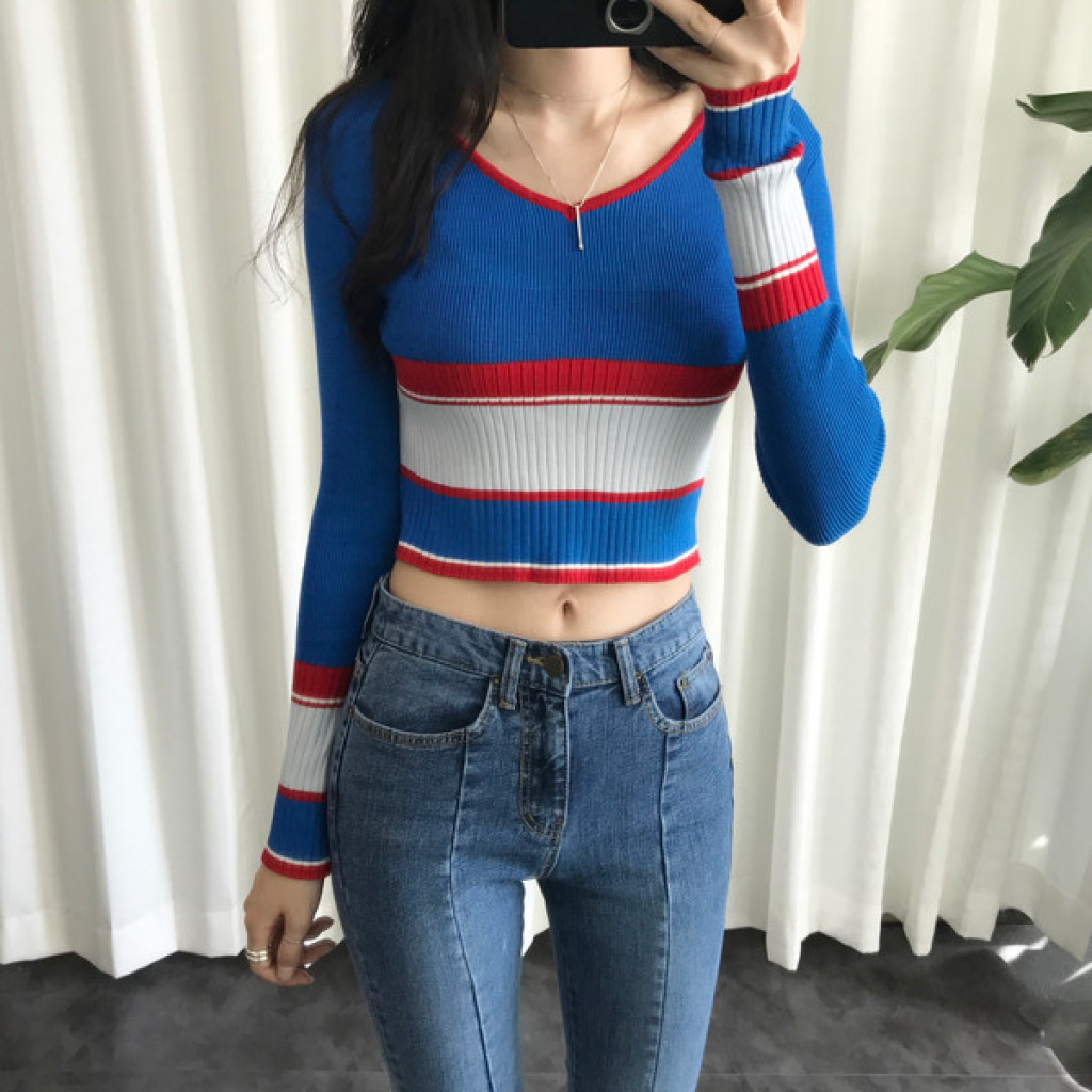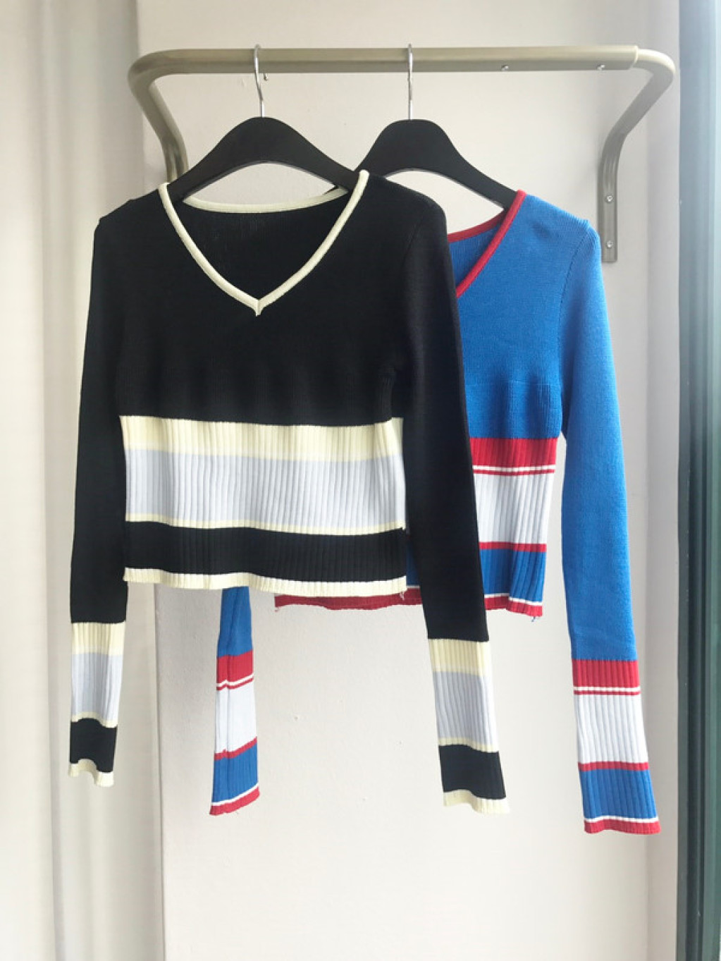 살짝 짧은 총장이 배색니트티셔츠의