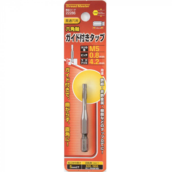サイズ下穴ドリル径:4.2mm、加工材の厚さ:5mm以下