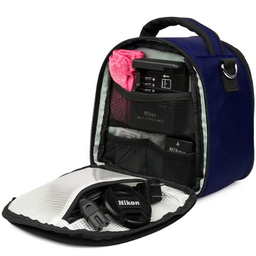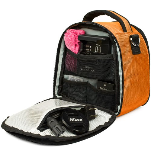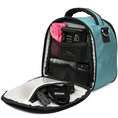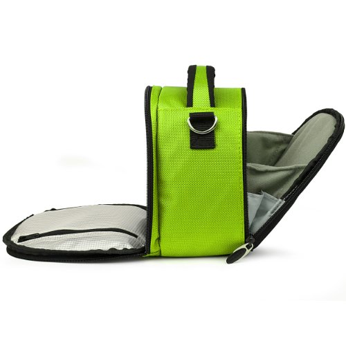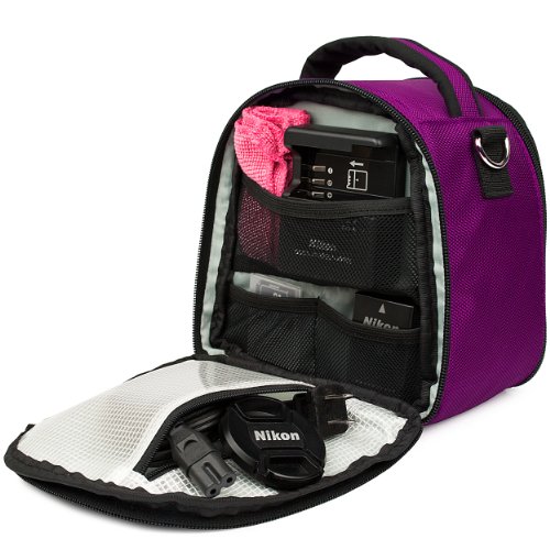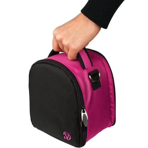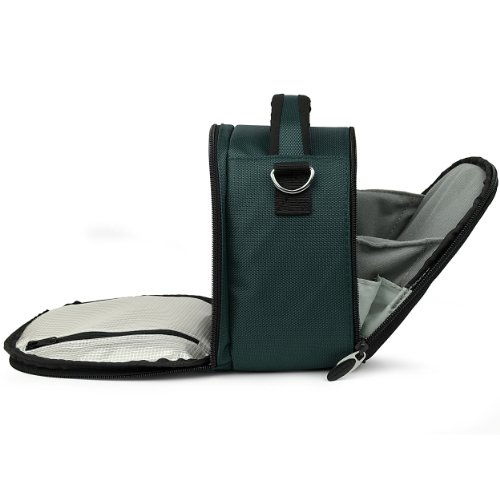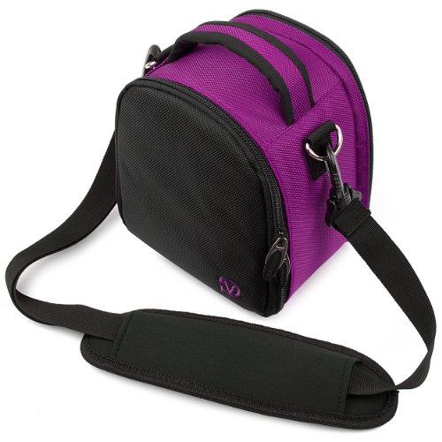 The VanGoddy Laurel makes the perfect travel companion, no matter where your travels take you or what adventures lay ahead. The bag features a stylish yet functional design with durable nylon tapestry and neoprene cushioned interior. Its dual zipper opening provides quick and easy access to your camera and accessories at moment's notice so you'll never miss another picture perfect moment. The Main compartment is designed to fit your SLR or advanced system camera along with the attached lens. The rear pocket can accommodate a wide range of accessories such as a charger, batteries, memory cards, data cables and much more! The Mini Laurel offers 3 convenient carrying solutions. The first lets you carry the bag with the matching shoulder strap. The shoulder strap has neoprene padding for comfort and can be adjusted to anyone's size no matter how petite or big. The second option lets you attach the bag to your belt loop, travel bag or backpack by using removable carbineer. You can also use the top carrying handle for an easier, simple carrying solution.