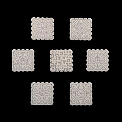 Asayu Hand Press Moon Cake Cookie Mold Mid-autumn Festival DIY Decoration 1 Barrel 7 Stamps White Flower