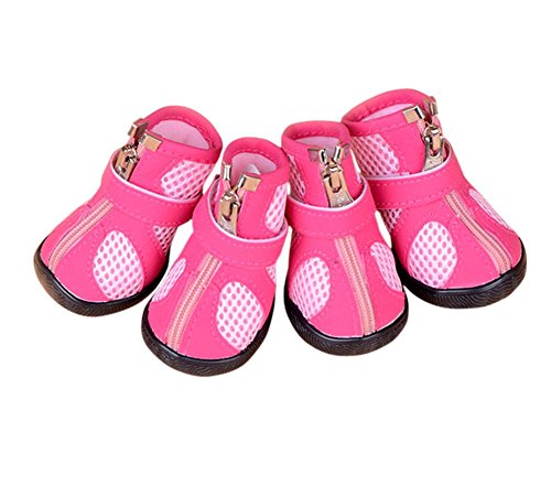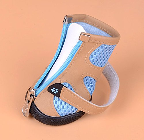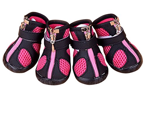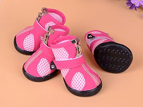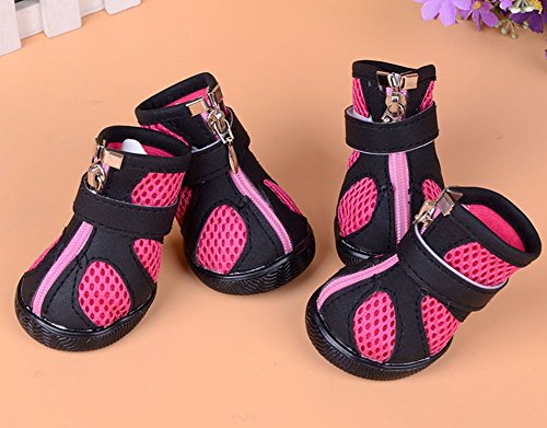 -. Feature : Rubber Outsole+Nubuck Leather+Mesh Fabric. / Color: Black, Rose Red, Khaki. / Very easy and quick to put on, but difficult to slip off. Closure control by a wide and adjustable Zip Up Booties strap, firmly fastens around ankle. / Keep your dog's paws clean, comfortable and well protected. Package: 1 set of Pet Shoes for 4 paws. / Perfect gift for your pet dog.