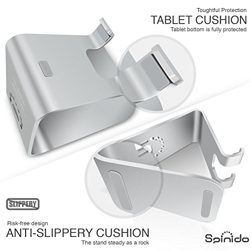 The smooth metal surface perfectly fit the desktop, which ensure the stability of the dock. More importantly, the cradle of humanity design allows us to use it in both portrait and landscape positions., to better enjoy our leisure time.